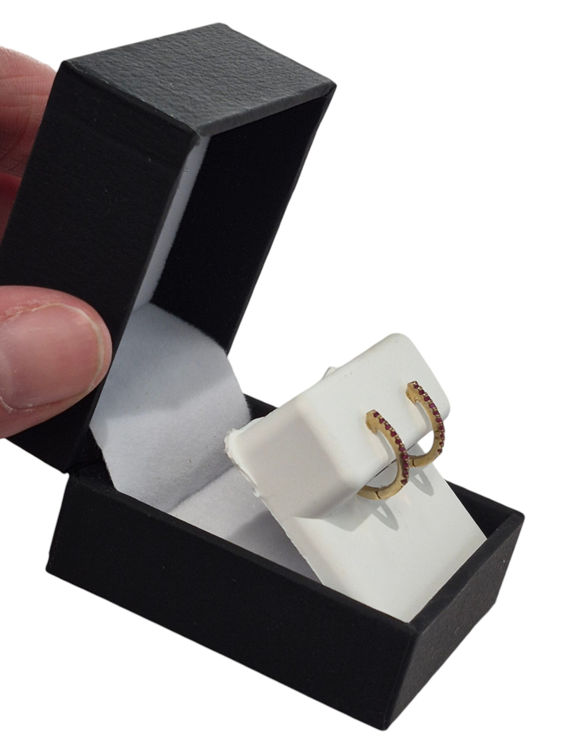 These brand new ruby hoop earrings come with a gift box.
