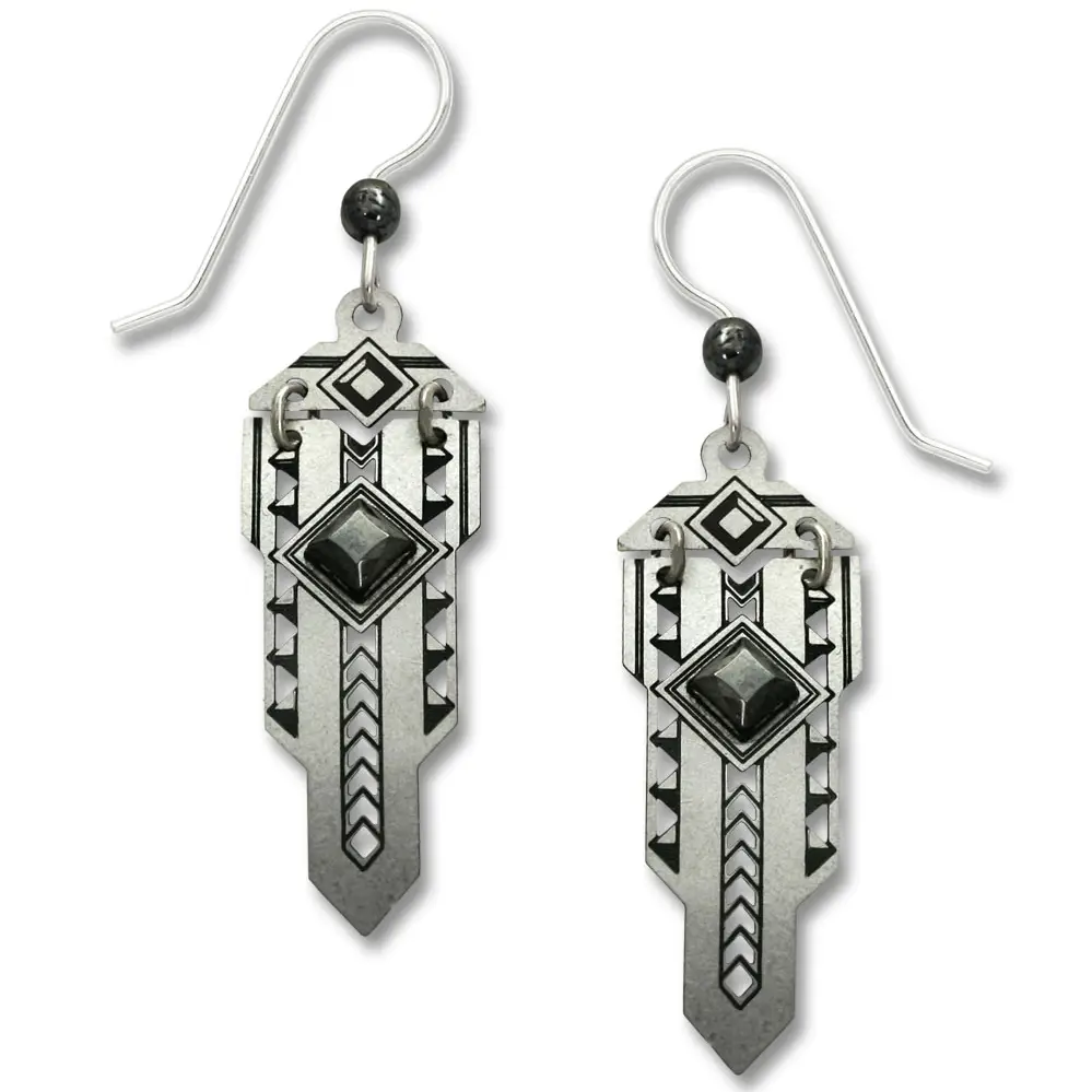 These gray art deco inspired earrings are sure to be a hit with design lovers! These earrings have hypoallergenic sterling silver ear-wires and are also good for people with sensitive ears. These fun earrings measure approximately 2 inches long (including the ear-wire) by 0.5 inches wide.