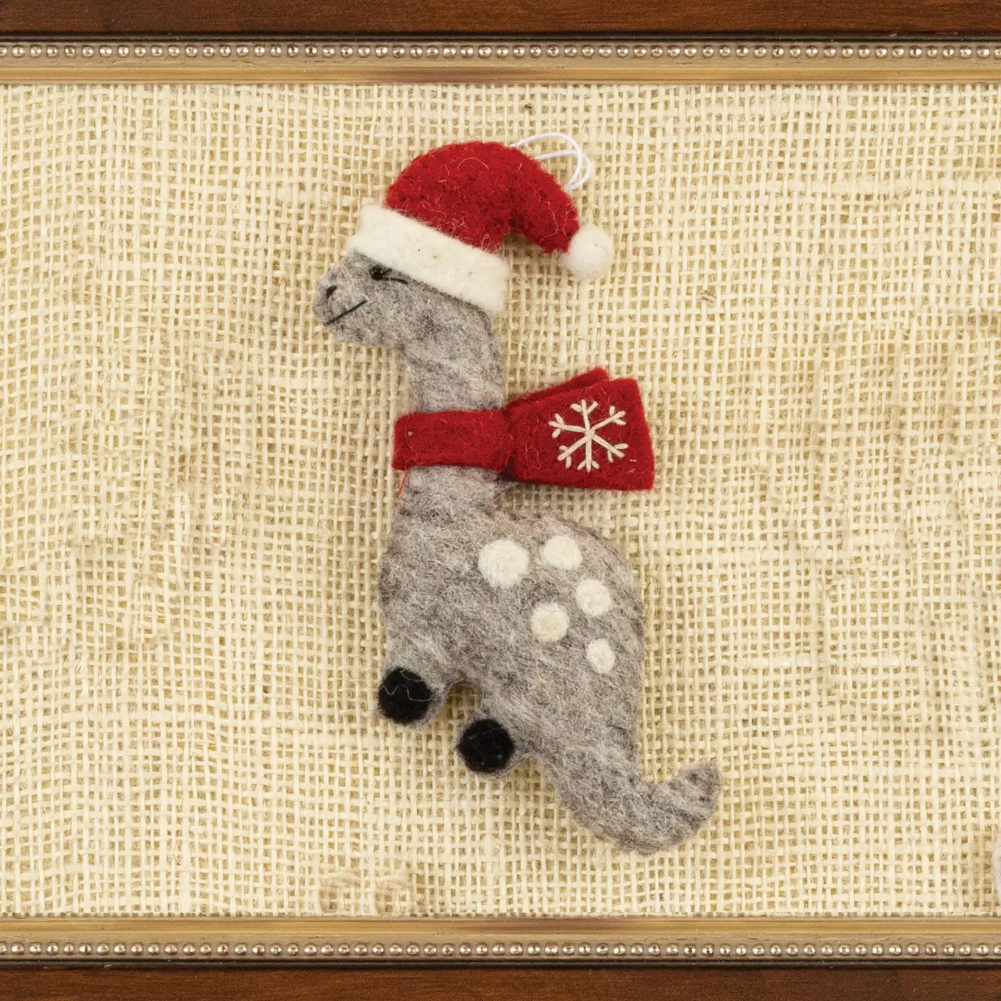 This dinosaur Christmas ornament has charming details and high quality fair trade handwork that make this hand-felted holiday ornament extra special.