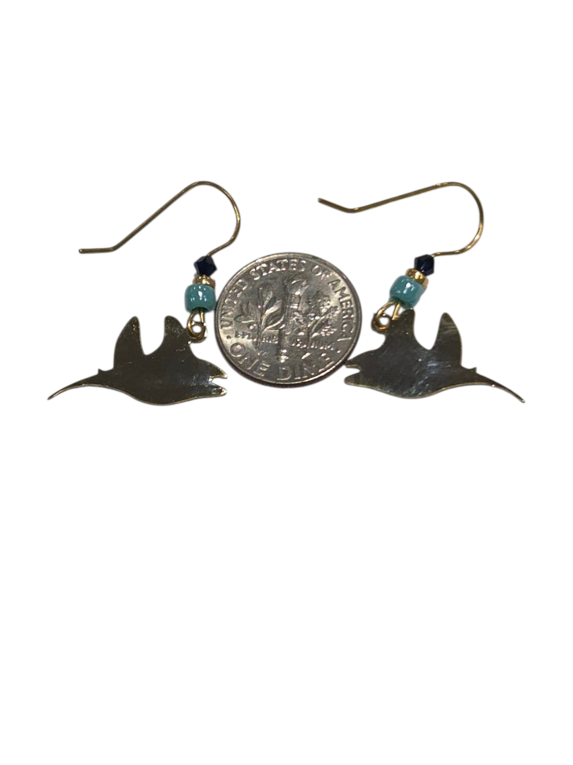 These manta ray earrings are perfect for a beach or ocean lover! These animal earrings measure approximately 1.7 inches long (including the ear-wire) by .55 inches wide. These earrings have gold-fill ear-wires which are good for people with sensitive ears.