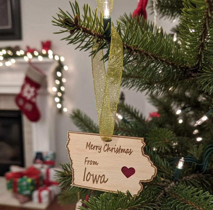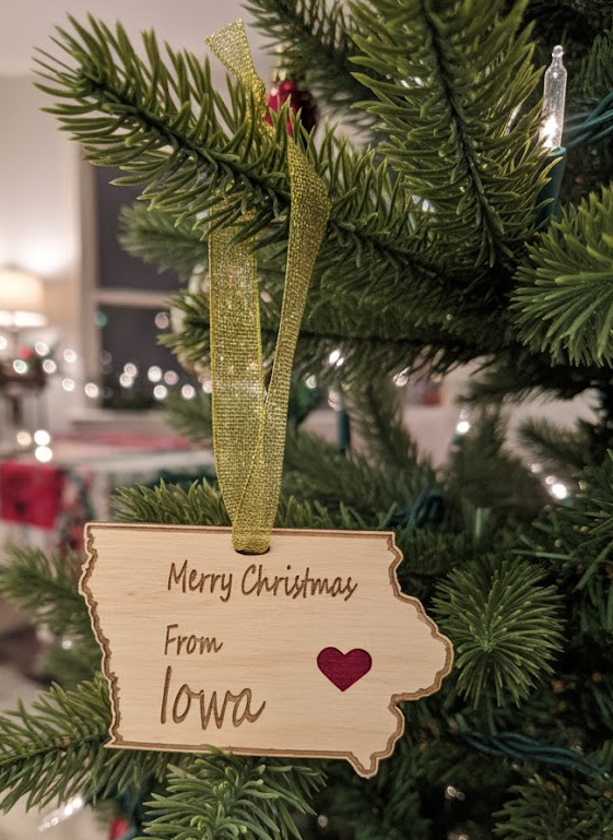 Each brand new Iowa Christmas ornament comes with a gift box.