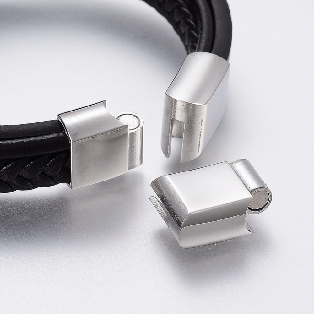 This multi-strand unisex black leather bracelet is on trend. A stainless steel clasp allows it to adjust in size to fit most small to medium wrists.