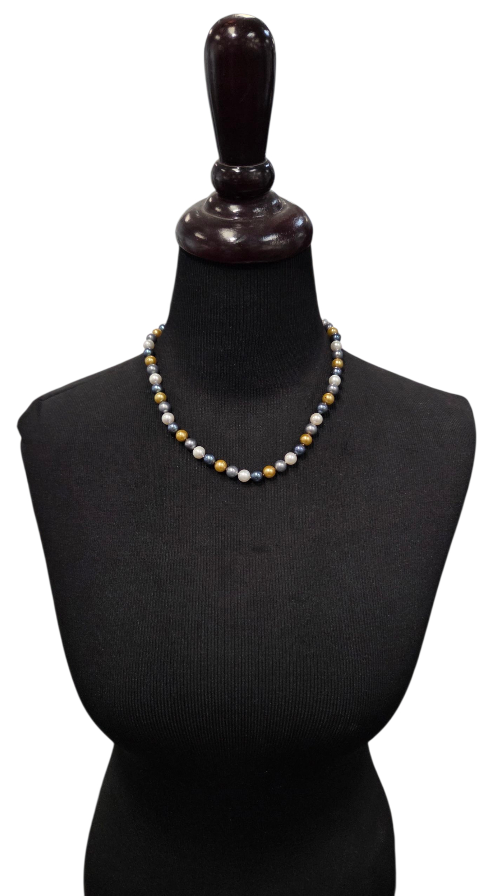 Multicolor Pearl necklace in white, gray, yellow, and peacock