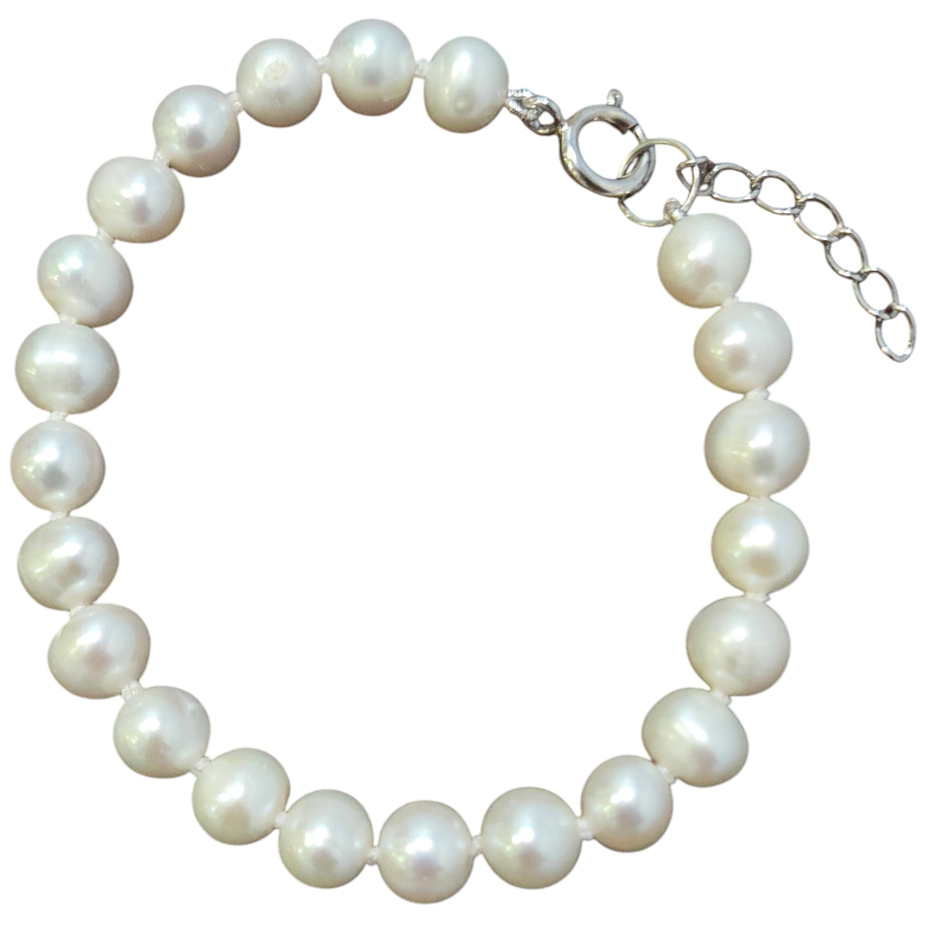 This white pearl bracelet is a very classic jewelry look sure to become a favorite! The pearls in this bracelet are 7-8 MM white fresh water pearls.