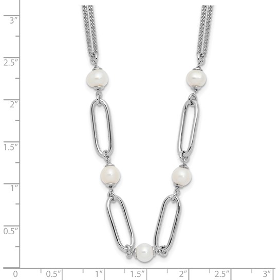 This sterling silver large link pearl necklace features five white fresh water pearls between large silver links. The white fresh water pearls are approximately 6 mm each.