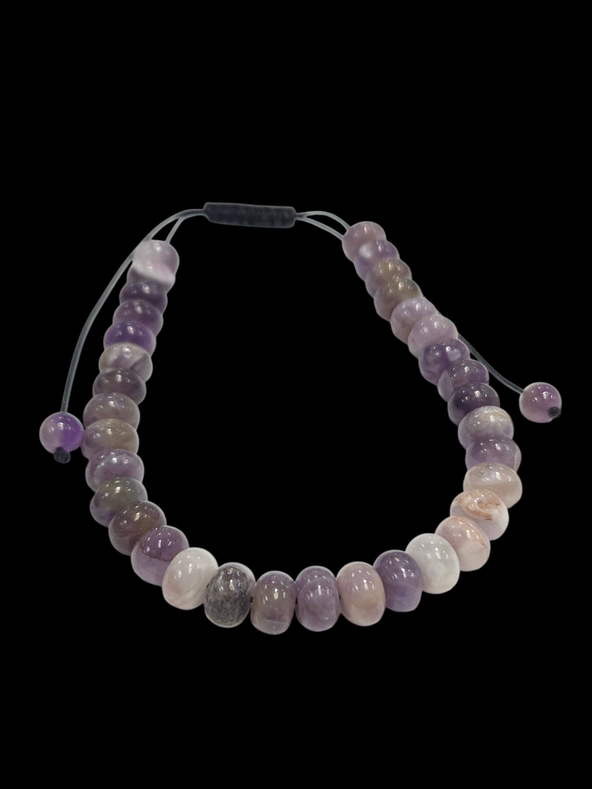 This unisex amethyst bracelet is great for a natural stone lover! These amethyst gemstone beads range in color from dark purple to light gray.