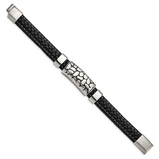 Stainless Steel Black Leather Bracelet – 8.75 inches in length