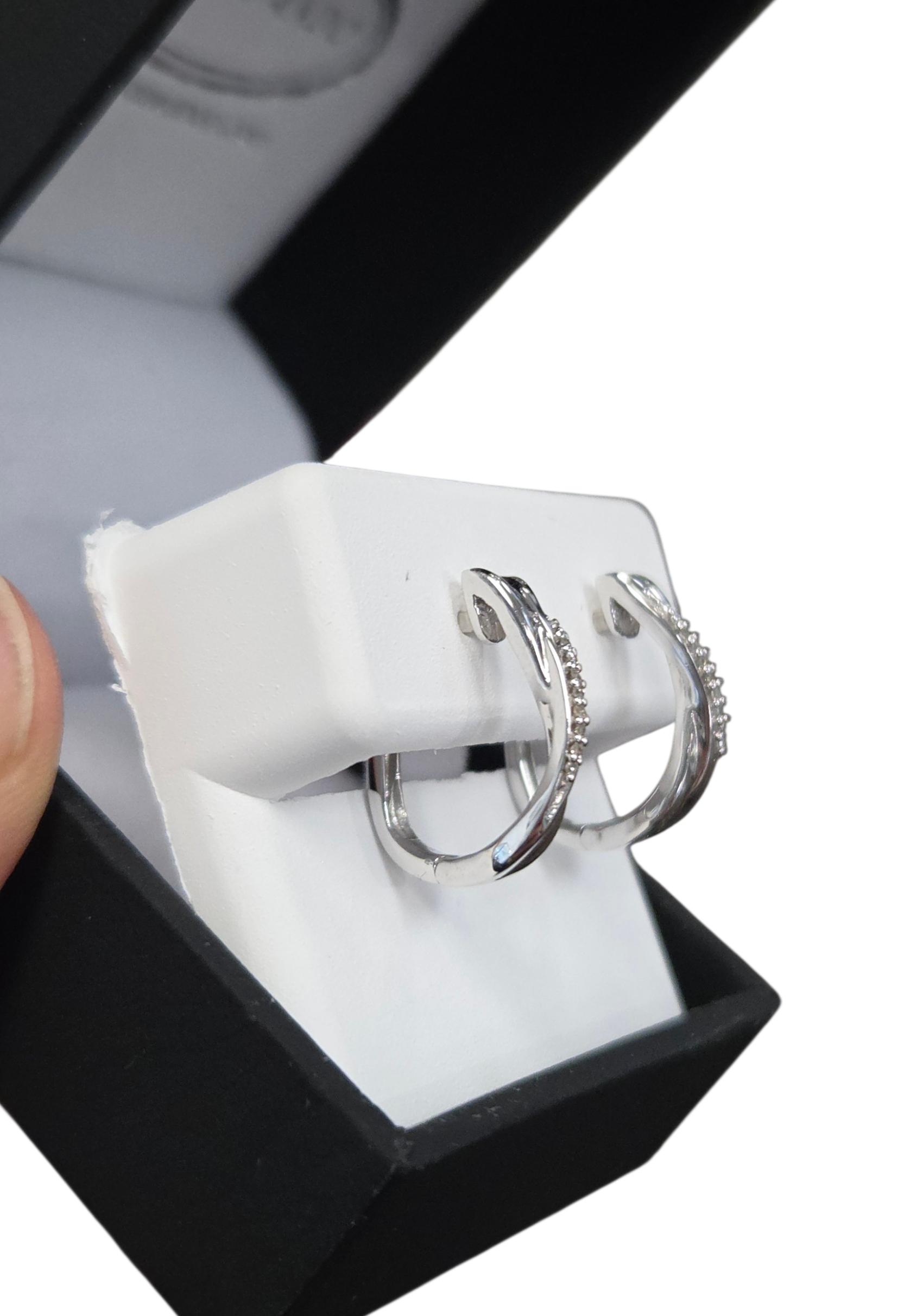 These brand new diamond and gold hoop earrings come with a gift box.
