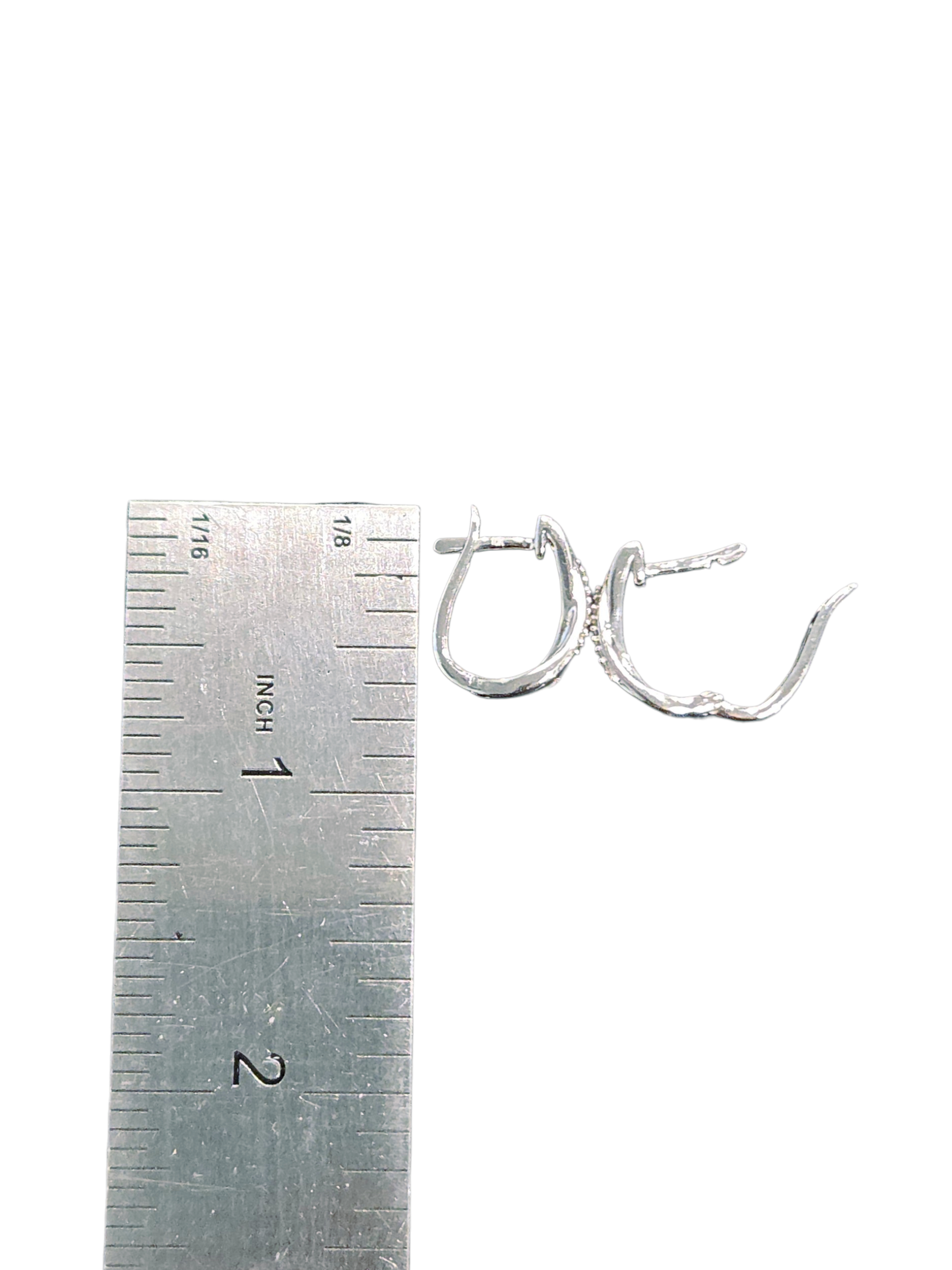 These diamond and white hoop earrings are a nice size for everyday wear. They are not to big, but not tiny at 3 MM wide by 15 MM long by 14 MM deep. All metal is 10K white gold. These earrings feature tiny diamonds, totaling .20 CTW on the front of these hoops giving them beautiful sparkle.
